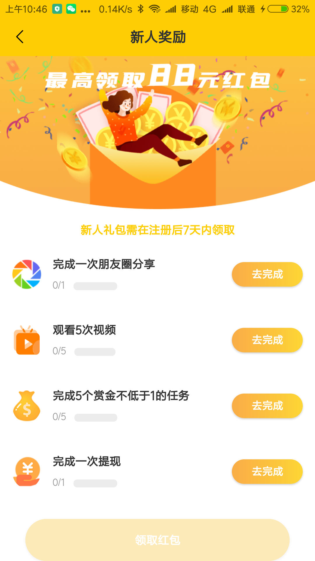 完成新人福利
