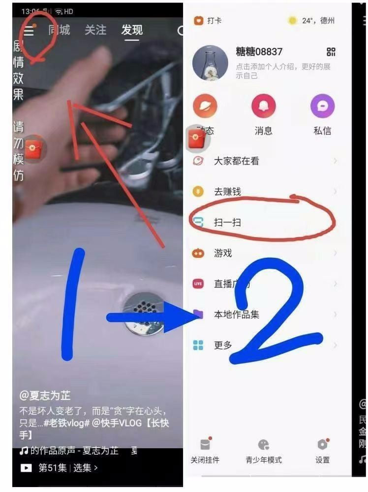 2.快手极速版或扫下面这个二维码,然后再去首页那里看2分钟视频。其实接下去你在快手签到、看视频也可直接挣钱的。