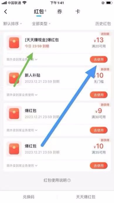 记住扫出来的优惠券是哪张,返回我的红包找到刚刚扫出来的那个券(前缀含天天赚现金字样,点去使用在显示的店铺列表去使用消费掉这个优惠券。比如这个是20满减13的券,实付7.1元以上。