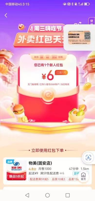 手机应用商店下载登录饿了么,打开饿了么扫一扫此二维码。已有订单或者红包里面有老友补贴的放弃做任务。