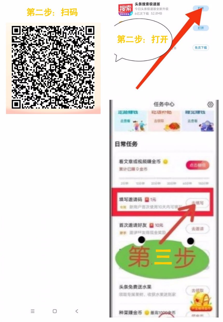 第一步,先去应用商店内下载【头条搜索极速版】 第二步,注册登录后填写我的邀请码:Q794393906